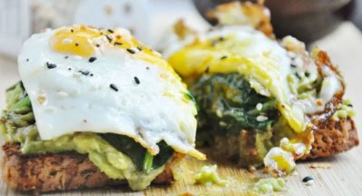 Nguyên liệu: bánh mì nướng nguyên cám, bơ, trứng, cải bó xôi tươi